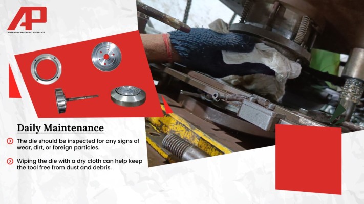 On a daily basis, the die should be inspected by the machine operator for any signs of wear, dirt, or foreign particles that could interfere with its operation. A simple cleaning routine, such as wiping the die with a dry cloth, can help keep the tool free from dust and debris. Even a small particle can affect the die’s precision and lead to a defective product, so this daily check is critical.